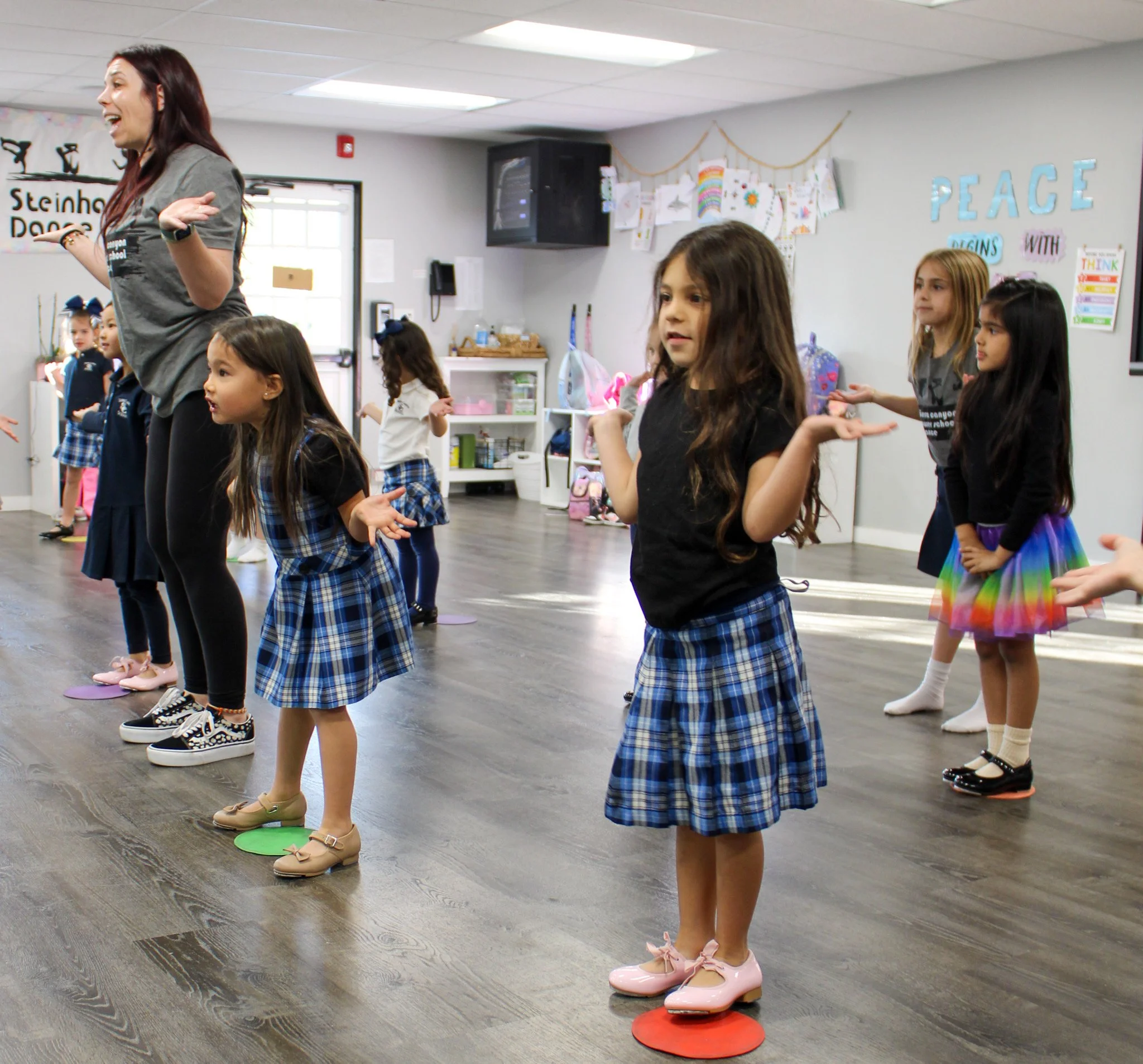 Tiny Toes is an engaging Tap, Ballet and Jazz class designed for young dancers (ages 4–6) who are ready to build on basic movements and quickly move into more refined technique and dance terminology. This interactive class introduces proper warm-ups, stretches, and across-the-floor progressions, allowing your dancer to explore new skills in a supportive, creative environment. The class is taught by Jessica Steinhart, supported by her Upper School assistants and Lower School junior assistants, ensuring each student receives personalized guidance.